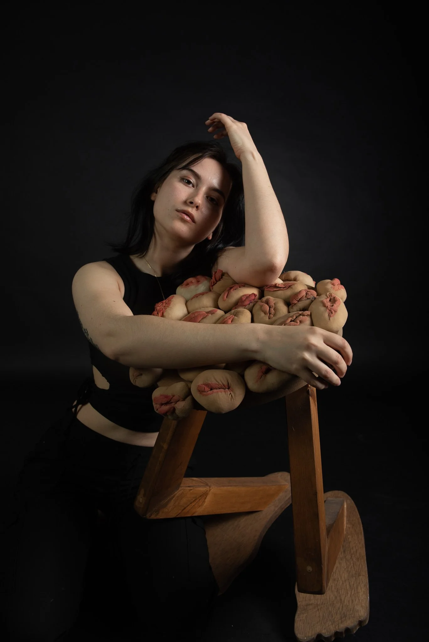 Evita Ziemele is a Latvian artist based in Manchester, UK at Rogue Artists Studios. She graduated with First Class Honours from Salford University in 2022 and has since exhibited her works across Greater Manchester and Japan. With her own unsettling visual language developed through wearable sculpture which distorts the body, she creates conversations on themes of trauma & body dysmorphia. Her imagery references mythologies and historical paintings but subverts the stories to create space for the female narrative to be told.